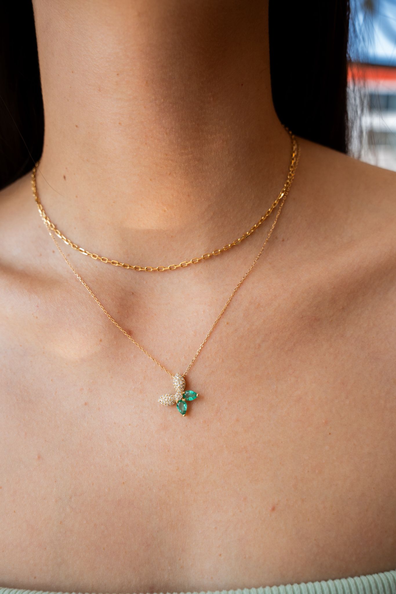 Set with 2 emerald totaling 0.58 carat